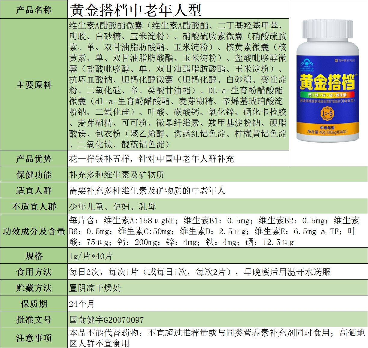 本礼品为 60 粒装黄金搭档中老年型,含产品积分卡片,有